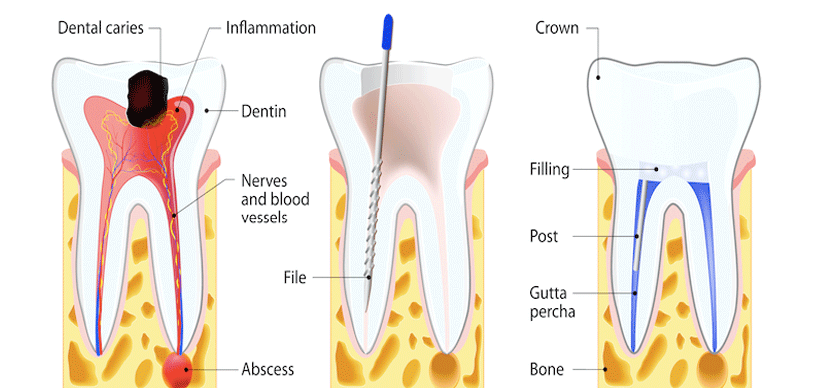 The pulp of the tooth has become damaged, and needs to be removed. If it is not removed, the tissues surrounding the root of the tooth can become infected, resulting in pain and swelling. Even if there is no pain, certain substances released by bacteria can damage the bone than anchors the tooth in the jaw. Without treatment, the tooth may have to be extracted.